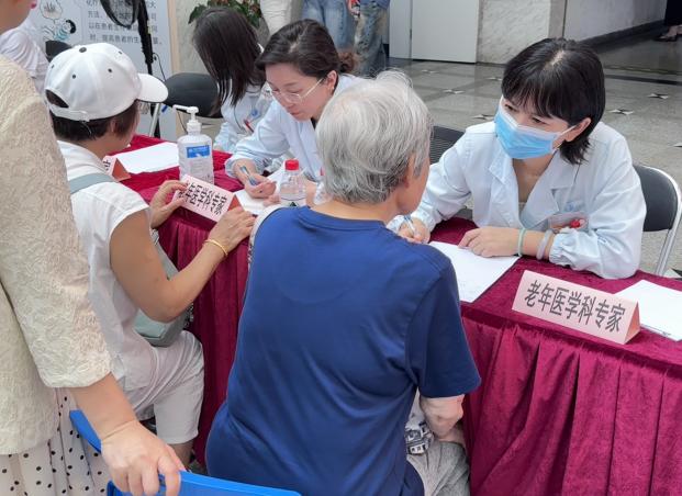 此次活动由老年医学科、疼痛科、肿瘤科等多学科专家联合开展大型义诊。义诊持续近两小时,前来咨询的市民络绎不绝。专家团队为百余位市民提供了问诊查体、疼痛评估等服务,并围绕老年常见病、疼痛管理与肿瘤防治等主题开展健康答疑与知识普及,,现场共发放老年医学相关宣传册100余份。