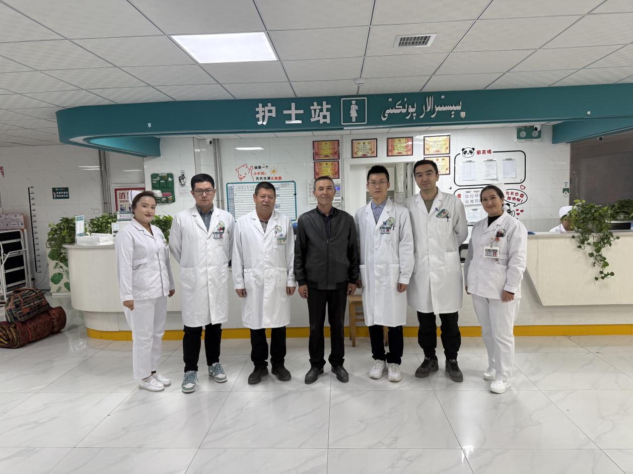 此次帮扶中,专家组构建了“诊疗+护理+教学”全流程赋能体系:诊疗层面,张国伟主任与马晓飞医师参与晨交班、教学查房,为十余例疑难病例提供精准诊疗建议,开展多台带教手术;护理层面,甘喆护士长与李夏雨主管护师规范护理查房流程,分享高风险管道管理策略,提升当地护理团队的精细化服务能力;人文层面,专家组专程探望援疆医师周磊,传递医院关怀,让援疆路上的坚守更有温度。