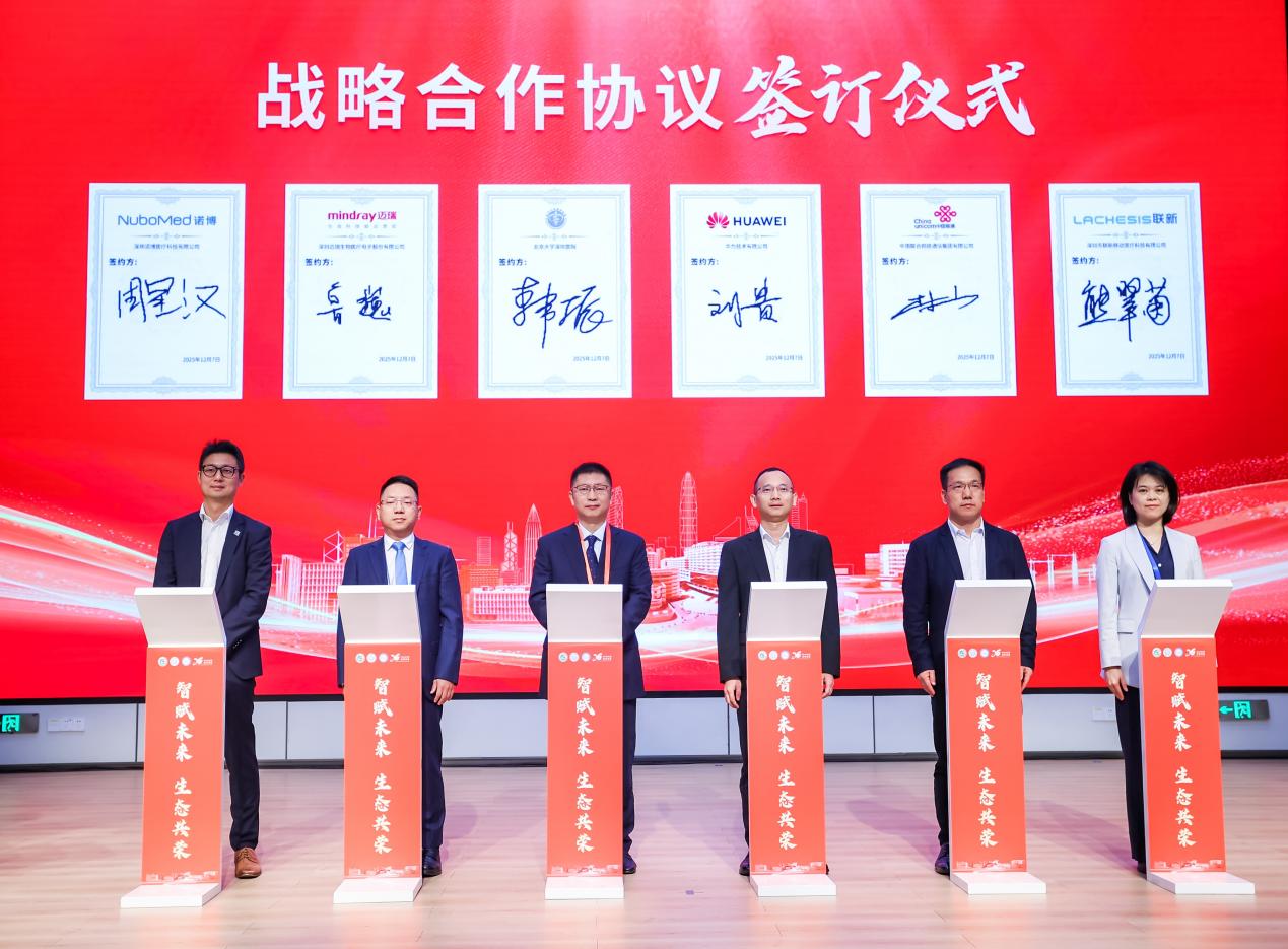 会上,北大深圳医院还与华为技术有限公司、深圳迈瑞生物医疗电子股份有限公司、深圳市联新移动医疗科技有限公司、深圳诺博医疗科技有限公司、中国联合网络通信有限公司深圳市分公司等多家科技企业签订了战略合作协议,共同推动信息技术与医疗健康深度融合,促进医工结合与产学研协同创新、国产化技术应用,加速医院数字化、智能化转型升级,共同构建数智医疗新生态,助力深圳医疗卫生事业和医疗健康产业高质量发展。