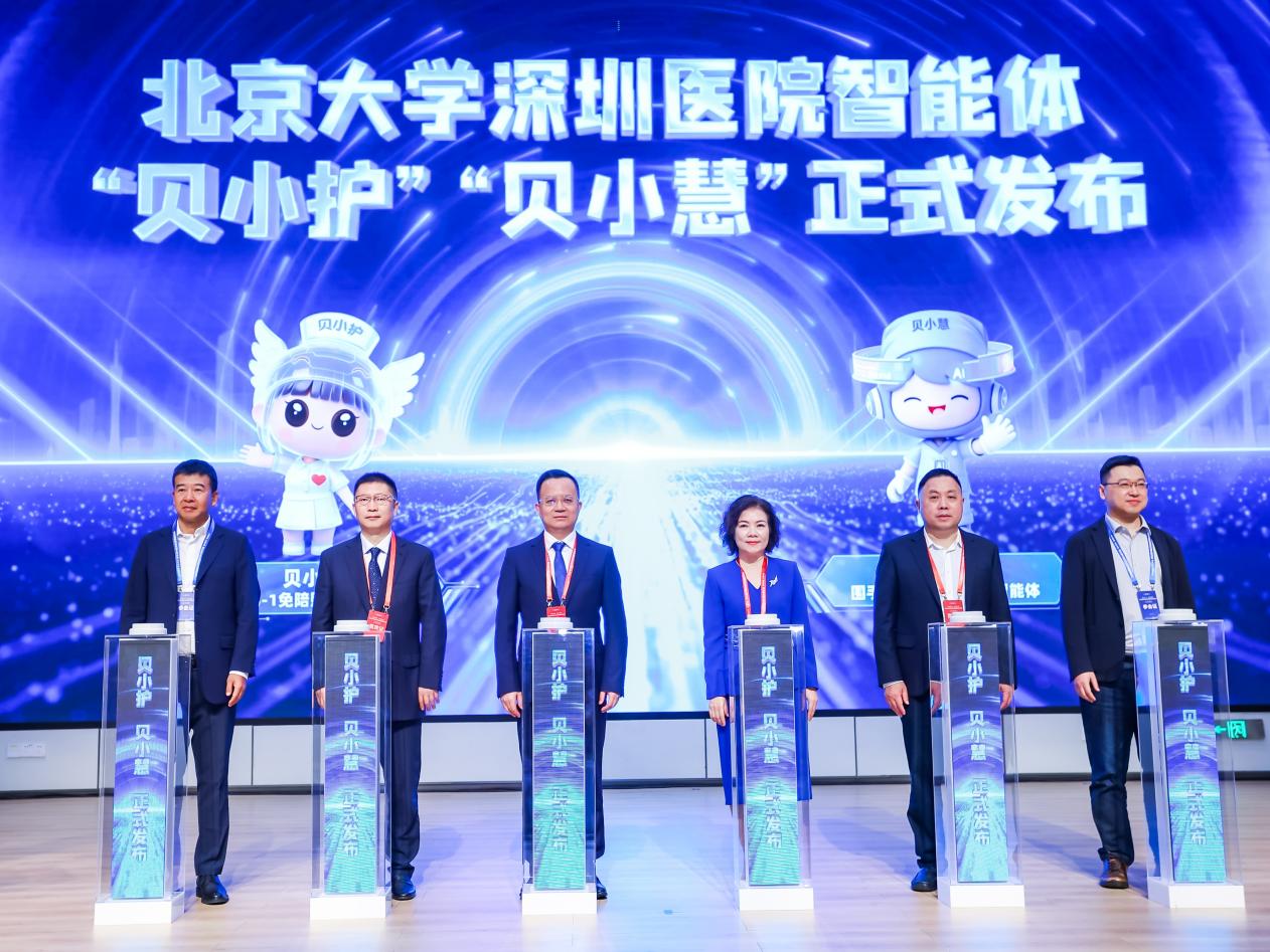 本次大会由深圳市医院协会主办、北京大学深圳医院(以下称”北大深圳医院”)、深圳北京大学香港科技大学医学中心承办。论坛每两年一届,今年全国首发了两款AI智能体、一个团体标准,签订医企合作协议,并设置了智慧医院“打卡”站点,让大家沉浸式体验了以“贝大夫”、“贝小护”、“贝小慧”、“贝小康”等“贝家族”为核心的数十个AI医疗应用场景,展示了智慧医院建设的“深圳方案”与全国创新实践。