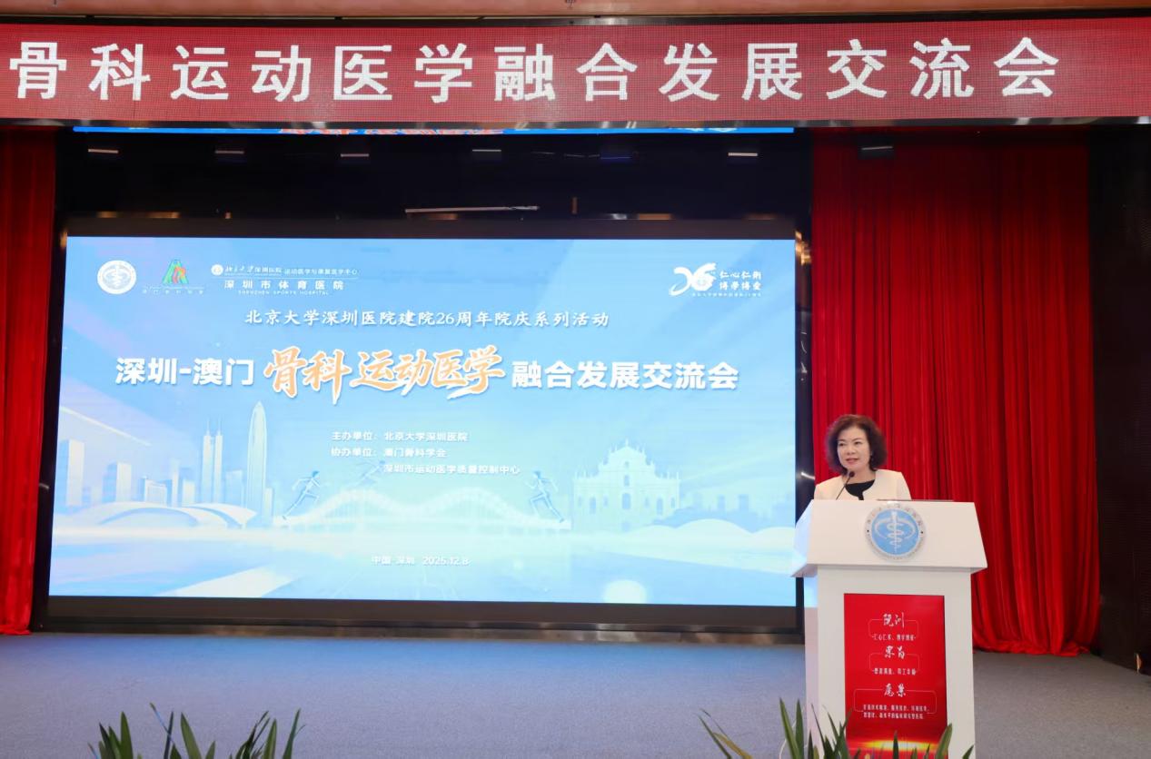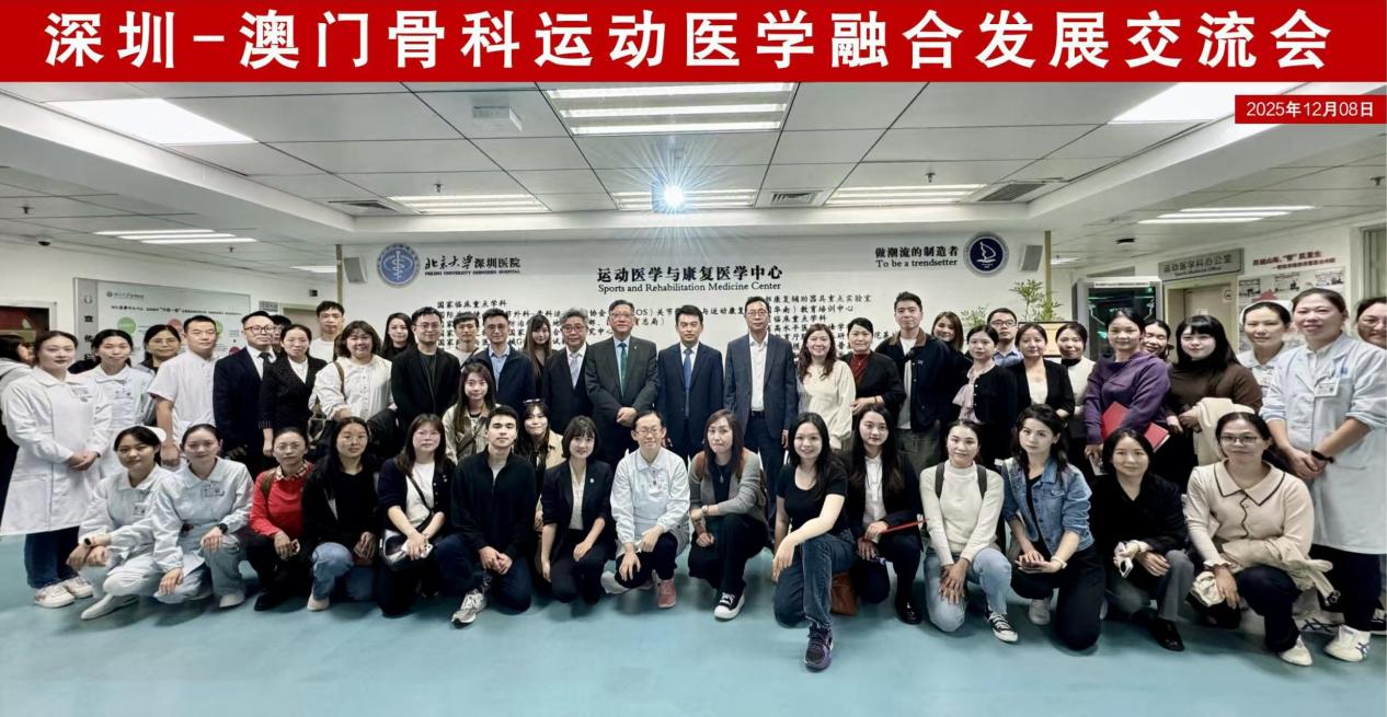 在北大深圳医院建院26周年之际,为深入贯彻落实《粤港澳大湾区发展规划纲要》,推动深澳医疗合作迈向更高水平,2025年12月8日下午,深圳-澳门骨科运动医学融合发展交流会在北京大学深圳医院举行。本次会议以“融合发展、共建共享”为主题,吸引了来自深澳两地的骨科、运动医学及护理领域的专家学者、医疗机构代表近百人参会,共同探讨骨科运动医学在两地协同发展中的新路径与新机遇。