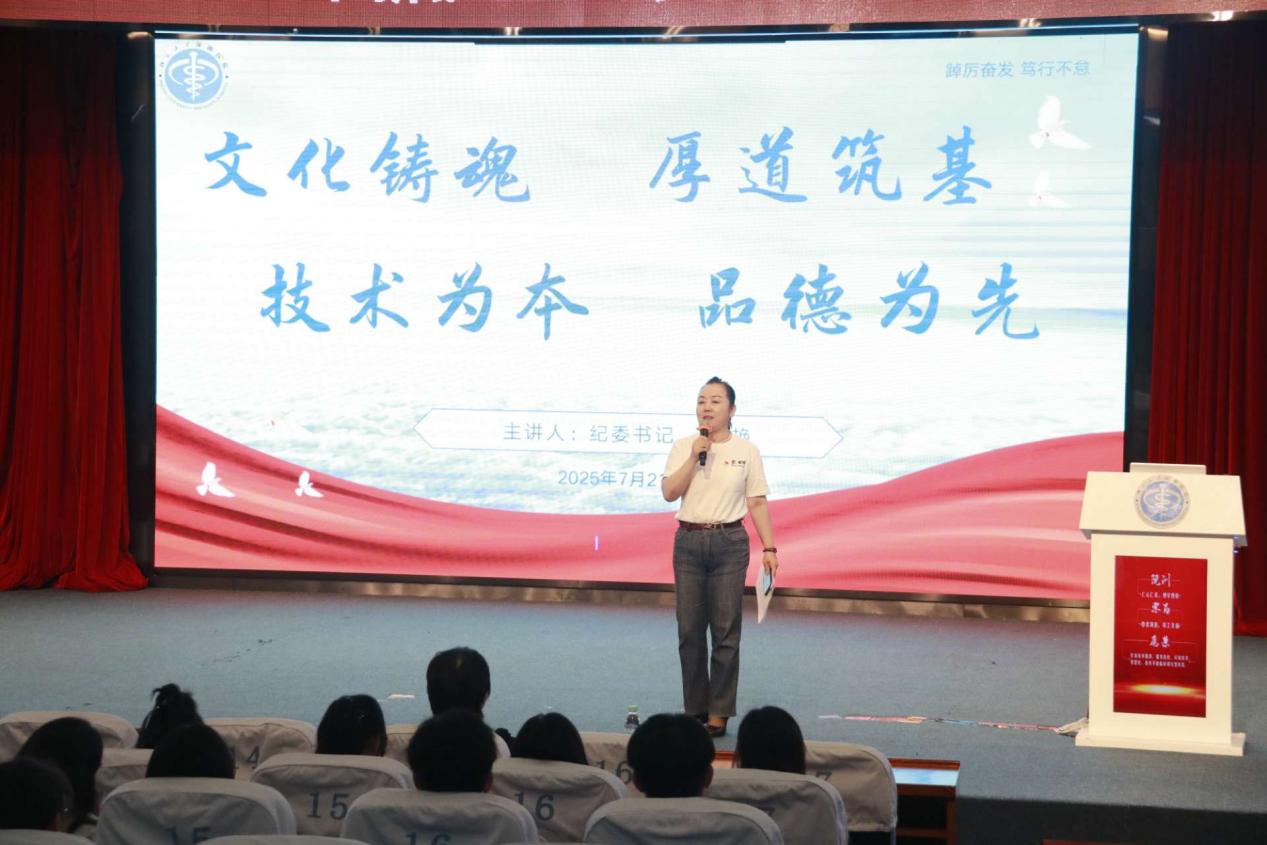 7月15日,岗前培训开班仪式正式举行。韩振副院长、护理部李九群副主任带领护理质控办欧阳淑园主任、大科护士长们参加仪式。韩振副院长代表医院对新成员表示热烈欢迎,殷切期望大家铭记南丁格尔誓言,弘扬奉献精神,秉持“诚心、细心、责任心”服务患者,恪尽职守,敢于担当,在平凡岗位上创造不凡价值,成长为优秀护理人才。开班仪式后,易黎副院长作《做一个温暖的医者》人文分享,强调护理工作应植根于人文关怀与医者仁心,号召新护士以博爱之心为护理职业注入温度,构建和谐护患关系。彭艳纪委书记则通过思政课强调品德修养与专业技能并重,激励新护士珍视职业荣誉与责任,以仁爱构筑护患信任桥梁。