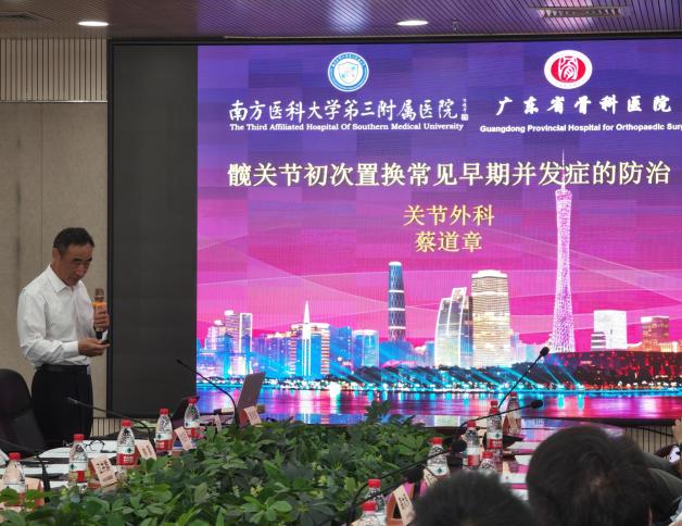 中山市中医院副院长高大伟在开幕致辞中强调,需通过四地联盟协作破解医疗同质化难题,构建标准化诊疗体系。随后,广东省骨科质控中心主任、南方医科大学第三附属医院蔡道章教授以“THA常见并发症防治”为题,结合临床案例剖析了全髋关节置换术的难点与对策以及如何更好地防治THA并发症。来自福建省骨科质控中心的福建医科大学附属第一医院方心俞教授分享了“骨科手术感染的预防与术前优化”经验,提出多学科协作与精准化管理的重要性。
